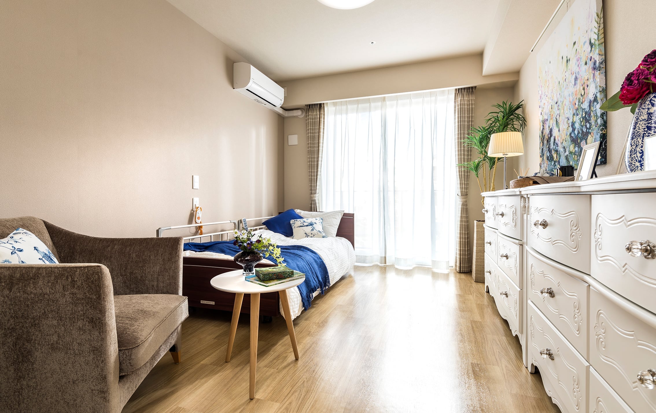 Bunkamuraは、音楽、演劇、美術、映画などに触れられる大型複合文化施設。文化・芸術の発信基地としての経験や人脈を活かして、ホームでイベントを行っています。一流アーティストによる演奏や東京フィルハーモニー交響楽団のメンバーによる弦楽四重奏などの音楽イベント、ホームの共用部に飾られる絵画の選定や無機質な防火扉に温もりを加える施設アートなど、文化の力でご入居者の暮らしに彩りを添えています。