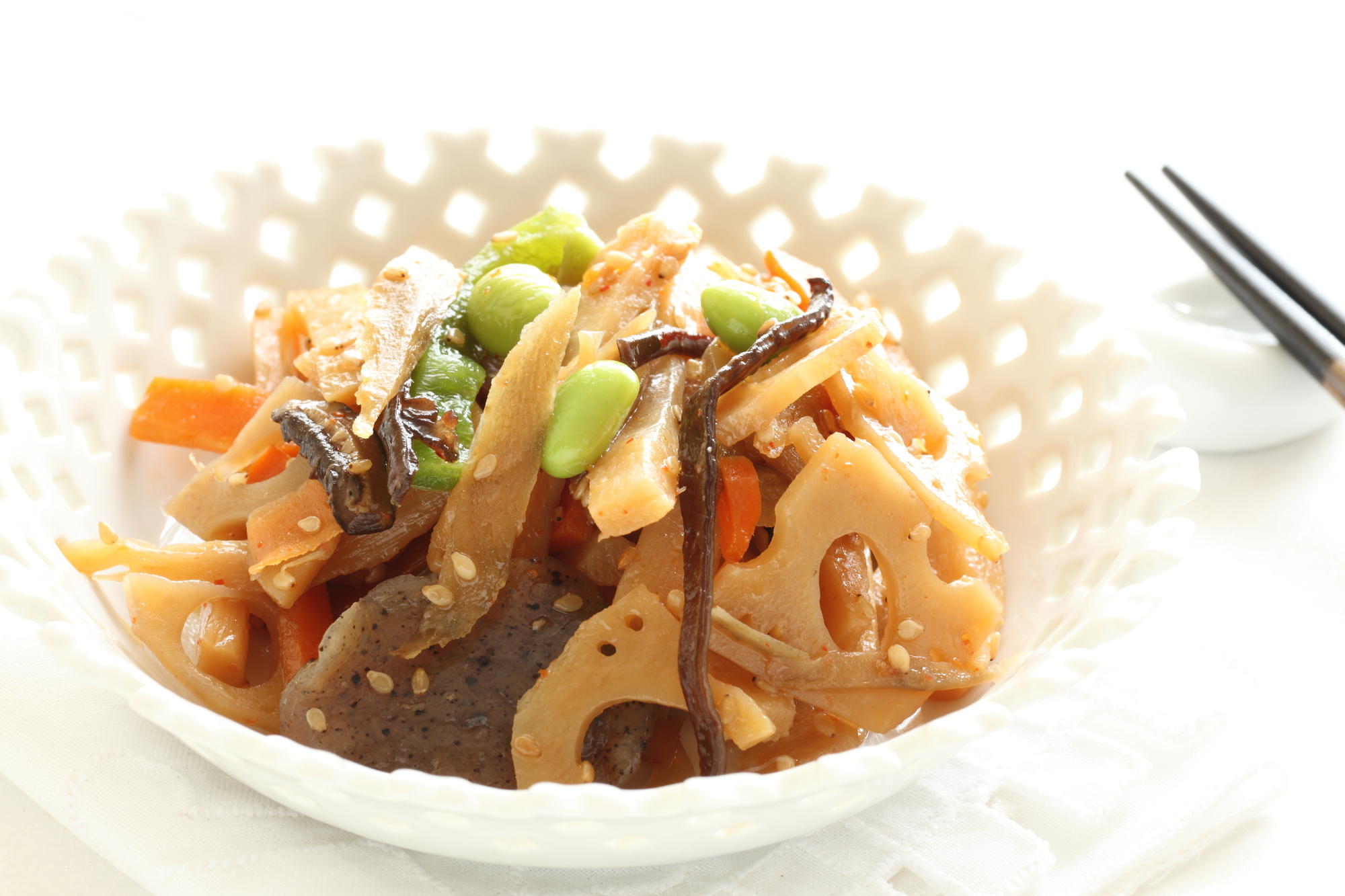 昼:韓国風ナムルそうめん、筑前煮、小松菜のおかか和え