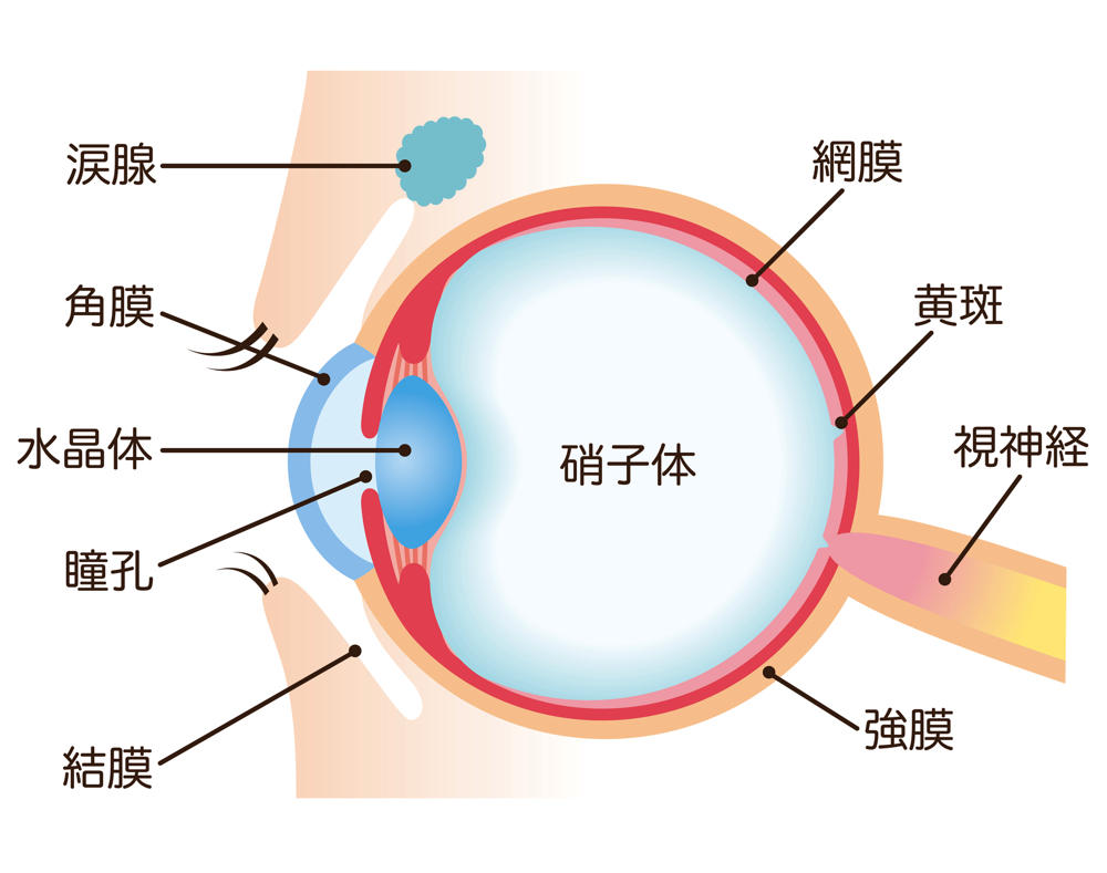 白内障は、眼球の中でレンズの役割を果たす水晶体が濁る病気です。主に加齢とともに、見えにくさ(視力低下)、かすみ(霧視)、まぶしさ(羞明)などのさまざまな症状が起こり、早い人で40代、遅くとも80代までには、ごく軽いものを含めればほとんどの人が発症します。