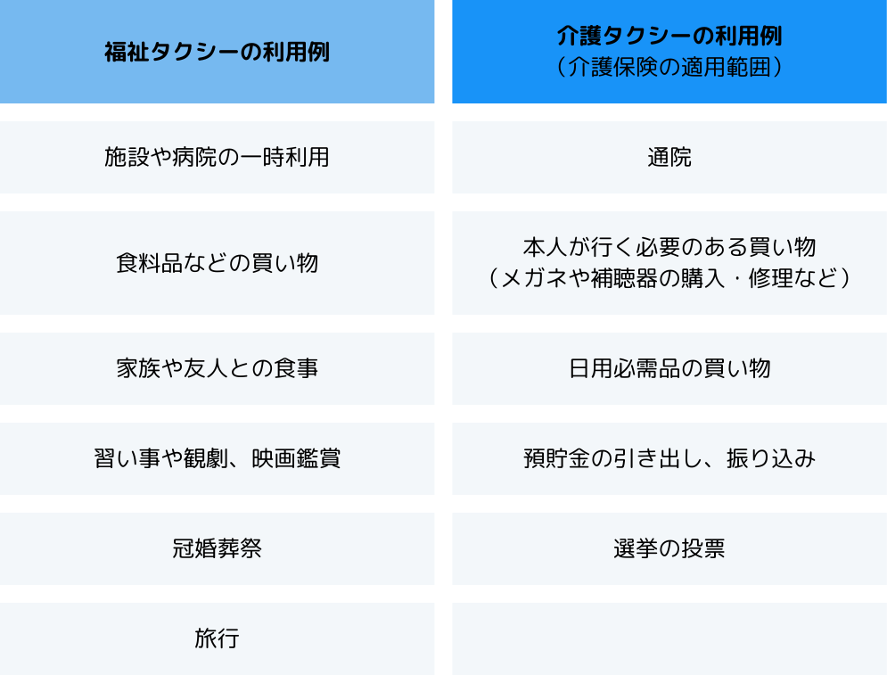 福祉タクシーと介護タクシーの違い②介護保険適用の違い
