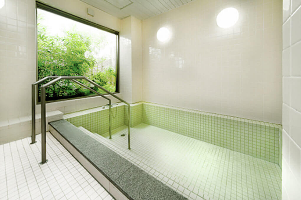 温泉気分を味わえる広い浴場では、ゆったりと身体をほぐせます。いつも手入れが行き届いておあり、どなたでも気持ちよく入浴して頂けます。