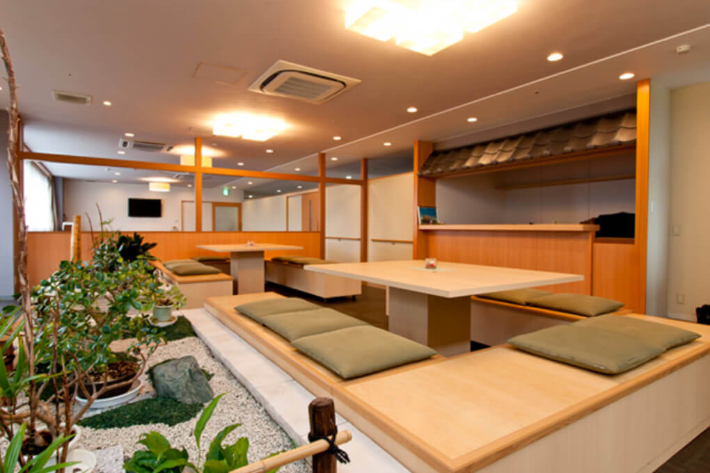 食堂・居間、エントランス、ラウンジ、お茶の間、浴室、大浴場、機械浴室、脱衣室、トイレ、事務室、医務室、エレベーター