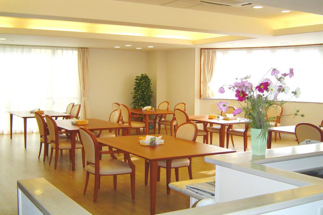 ご入居者様が日々お過ごしになるリビングルーム兼食堂兼機能訓練室には多くの窓があり、晴れの日にはたくさんの光が差し込みます。温かい雰囲気の中でお茶を飲みながら談笑をしたり、お食事を召し上がられたりと、落ち着いた環境でお過ごしいただけます。ホームが明るく温かい場所でありますようにと、私たちの大切な想いが詰まった場所となっています。