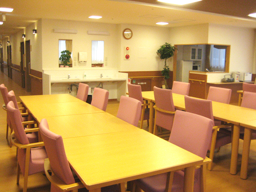 一般浴室(2~4階[各2ヶ所])、機械浴室、食堂(機能訓練室兼用)[各階]、相談室、健康管理室、洗濯室、喫煙室、パントリー、エレベーター、駐車場
