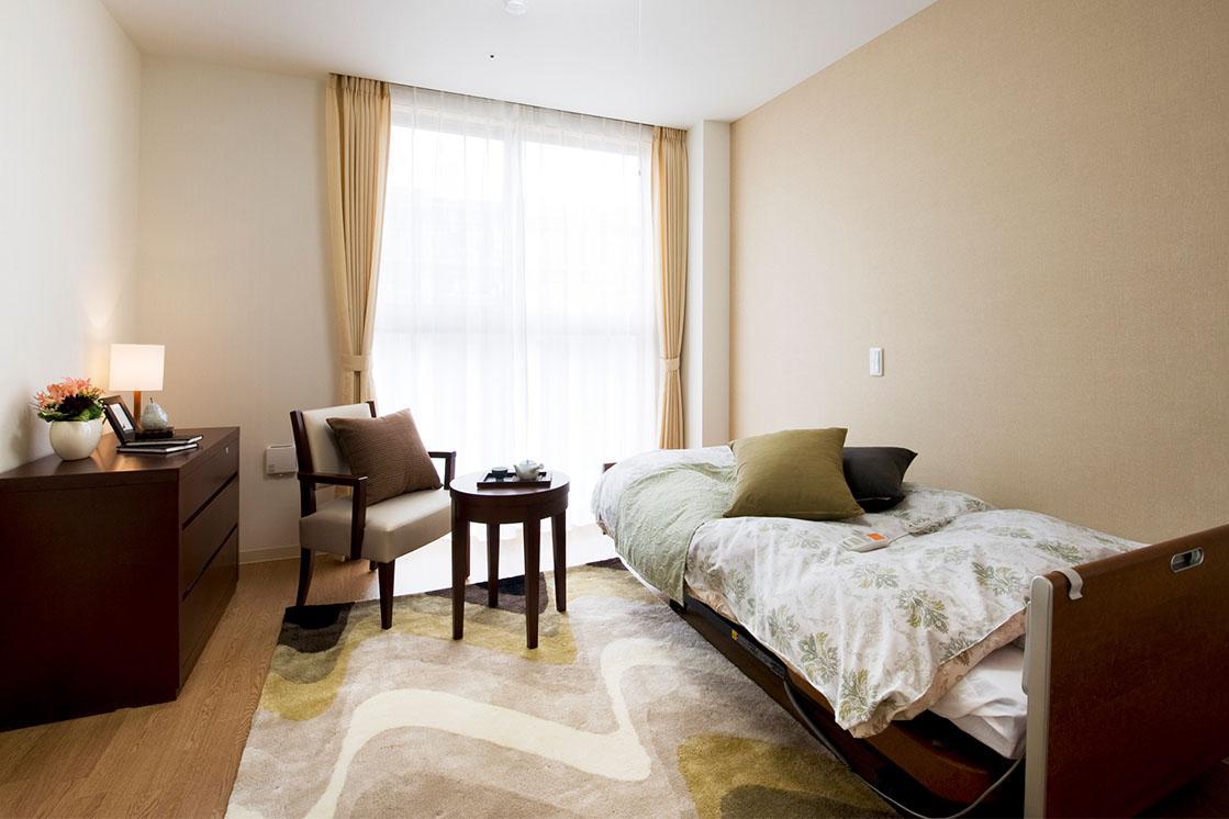 クローゼット、テレビ配線、ナースコール、温水洗浄機能付トイレ、介護用電動ベッド、洗面、電話配線、冷暖房設備 ※すべての居室にない設備もございます。
