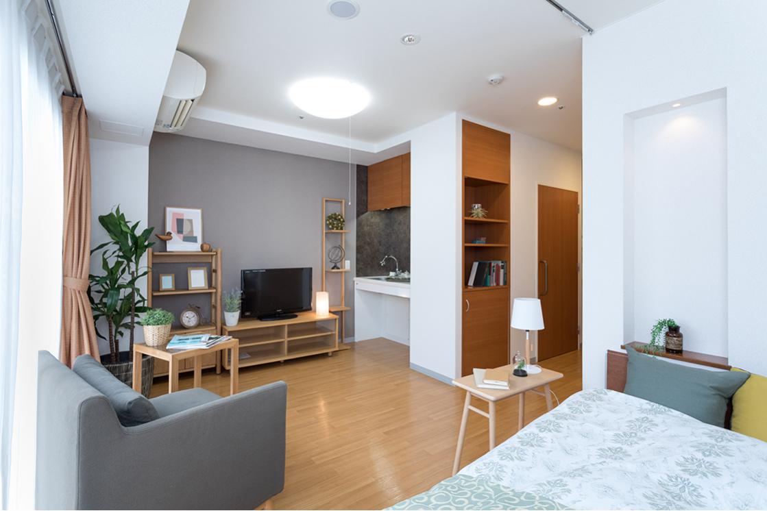 クローゼット、テレビ配線、ナースコール、ミニキッチン、温水洗浄機能付トイレ、介護用電動ベッド、床暖房、洗面、電話配線、冷暖房設備 ※すべての居室にない設備もございます。