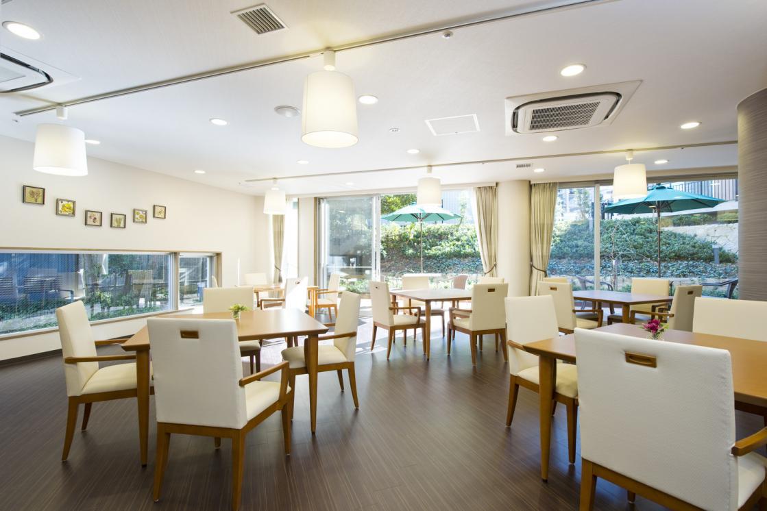ダイニングルーム、ティールーム、ビューティサロン(各種の外部サービス〔利用者実費負担〕を受けるための部屋)、ファミリールーム、機能訓練室、健康管理室兼事務室、浴室
