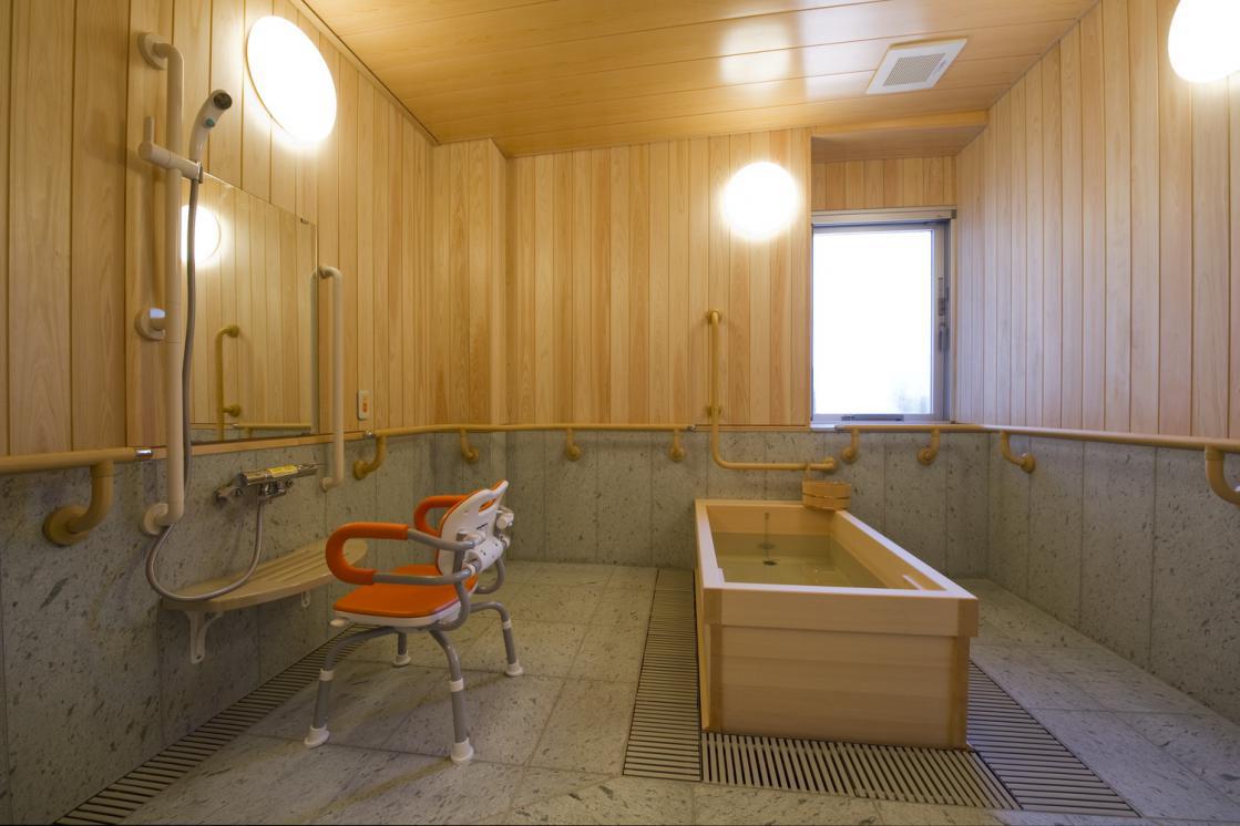 車椅子の方でもご入浴いただけるリフト付き浴室です。続きを読む -