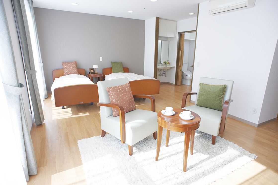 お二人でご入居いただけるタイプのお部屋。介護用電動ベッド、クローゼットなど生活に必要な設備が備え付けられています。冬にはうれしい床暖房付きです。(※すべての居室にない設備もございます。)続きを読む -