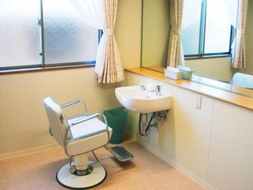 有料訪問理美容サービスを受ける際にご利用いただけます。皆様、訪問美容師さんともお顏なじみになり、いろんな話に花が咲いていらっしゃいます。(各種の外部サービス〔利用者実費負担〕を受けるための部屋)