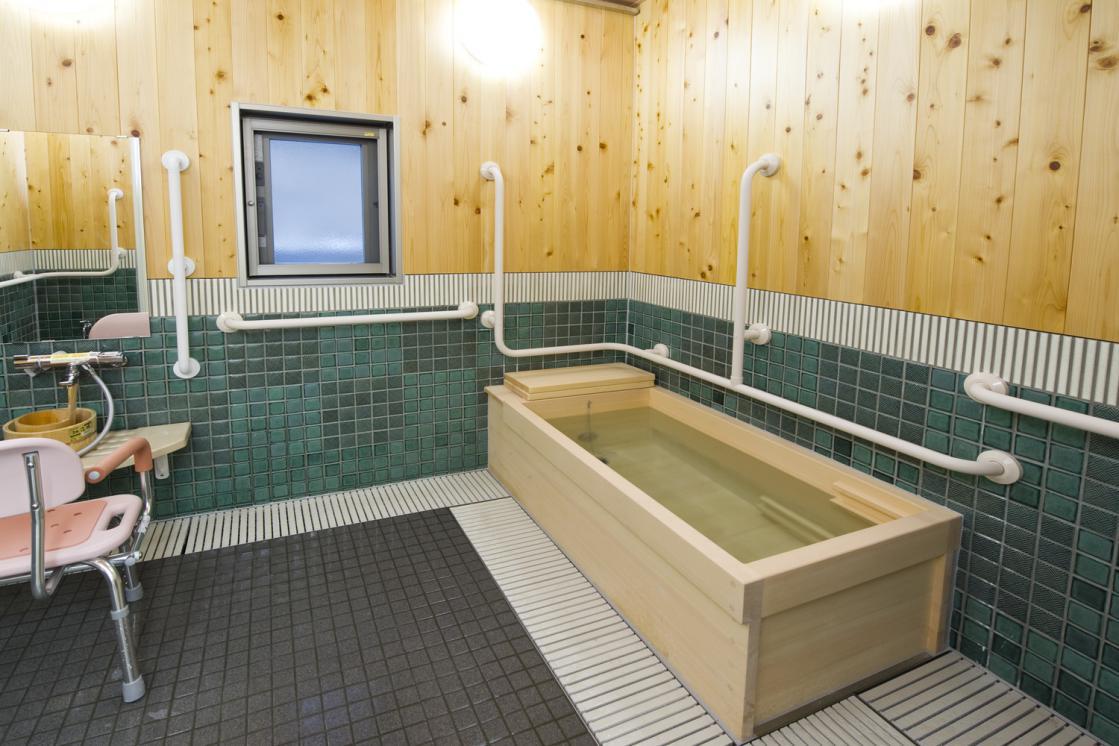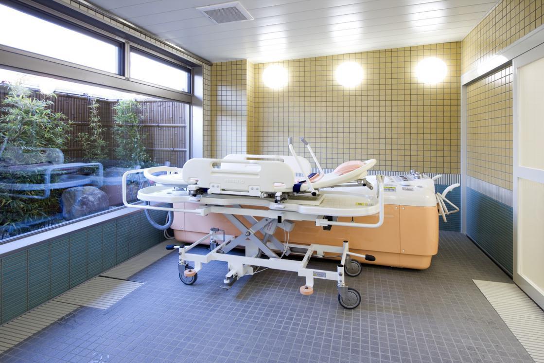 1Fにある寝台浴です。お身体の不自由な方でも寝たまま楽に入ることができる浴槽です。
