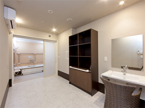 広々とした脱衣室には冷暖房、ドライヤーを完備。ゆっくりと、お1人ずつお風呂を楽しんでいただけます。