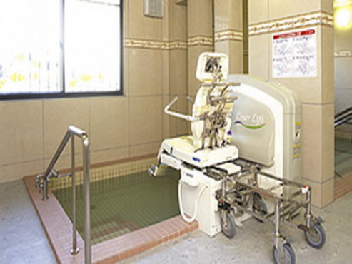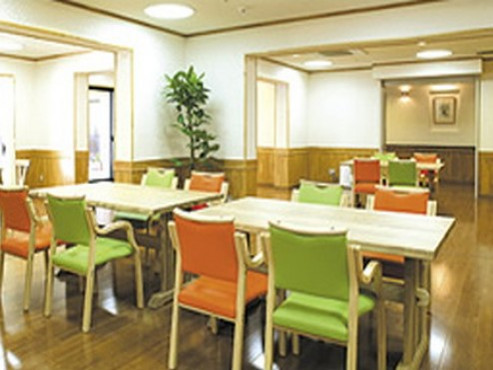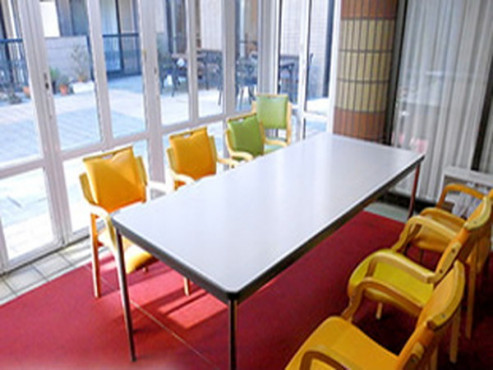 食堂、機能訓練室、車いす対応トイレ、一般浴室、介護浴室、洗濯室、脱衣室、コミュニティルーム、レクリエーション室、中庭、売店、備蓄倉庫、エレベーター(ストレッチャー対応)、ナースコール、理念室、汚物処理室、消防設備