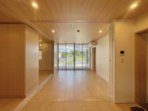 南側居室はベランダが広く(10平米)日あたりがいいです。 窓からは県道190号線を行き交う人と車、遠くに田んぼと里山を望んでいます。続きを読む -