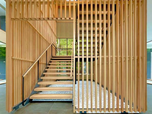 ラウンジ中央に木に囲まれた階段があります。 天井からも日が差すのでいつでも明るいです。 段差は低く、手すりもついていますので安心してご利用いただけます。続きを読む -