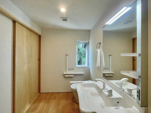 ユニットバスで浴室乾燥機能がついております。 自動開閉便座、洗面台は車椅子対応です。 窓からは森が眺められます。 洗濯乾燥機を置くスペースもございます。続きを読む -