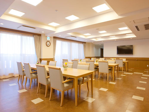 エントランスホール、リビング&ダイニング(食堂)※1、パントリー、機能訓練室※2、ヘルパーステーション、健康管理室、特別浴室、個別浴室、ヘアーサロン(理美容室)、化粧室、喫煙室、ファミリールーム、ライトコート ※1食事だけでなくイベント・レクリエーション等、日常生活上多目的に使用。 ※2機能訓練だけでなく多目的に使用。
