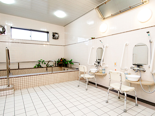 大きな浴そうでご入浴いただけます。お一人で入れる個浴や、ほかに機械浴の設備もあります。続きを読む -
