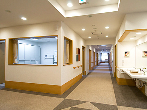 屋内はブラウンの落ち着いた雰囲気。ケアステーションには24時間スタッフがおり、緊急時の対応をします。続きを読む -