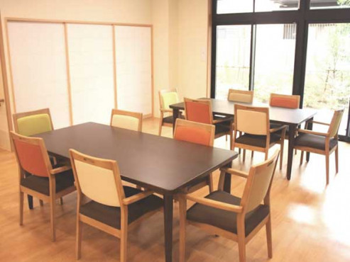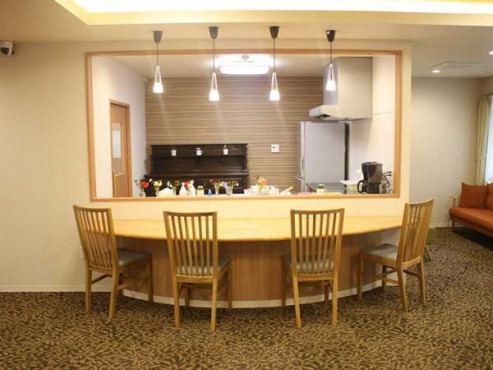 食堂、ラウンジ、フロント、庭園、カフェ、メールボックス、サークルルーム、多目的室、相談室、ヘルパーステーション、健康管理室、ホール、プレイルーム、洗濯室、個浴室、機械浴室、リフト浴室、汚物処理室、駐車場、駐輪場、バイク置き場、エレベーター