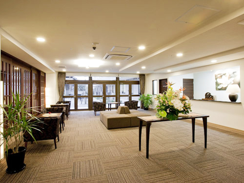 中庭に面した開放感溢れるお寛ぎの空間です。また、受付カウンターでは日常サービスをサポートする受付・お取次ぎ等のサービスをおこなっております。続きを読む -