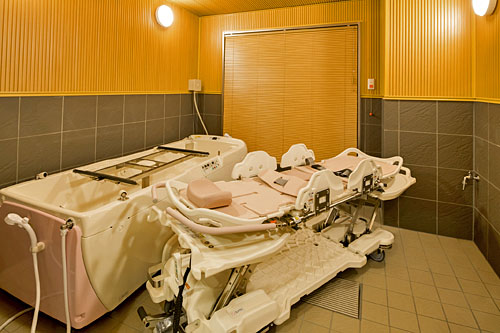 移乗が楽になった最新型の寝台浴を採用。寝た状態のままで入浴が可能です。