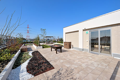 自由に出入りいただける屋上テラスは、緑あふれる気持ちの良い空間です。のんびりと散歩や日光浴、夕涼みなどお楽しみいただけます。(※市の花火大会や有名テーマパークの花火も見えます。)