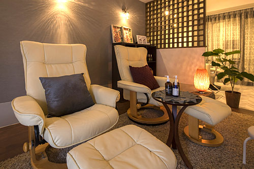 理美容室を併設したリラクゼーションルームでは、気分に合わせてお選びいただけるタイ式フットケアやインド式ヘッドケアなど、リエイ独自のリラクゼーションサービスを提供しています。