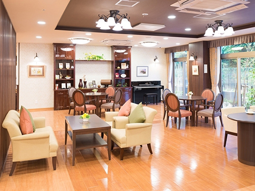 エントランスロビー、ラウンジ、ダイニング(食堂) 兼 機能訓練コーナー、ファミリーダイニング、カフェ、浴室(個浴・特殊浴)、理美容室、健康管理室、相談室、洗濯室、トイレ他