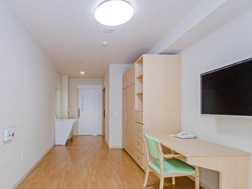トイレ、洗面、ナースコール、ベランダ、クローゼット、書棚、デスク、テレビ、冷蔵庫、脱臭機器、金庫