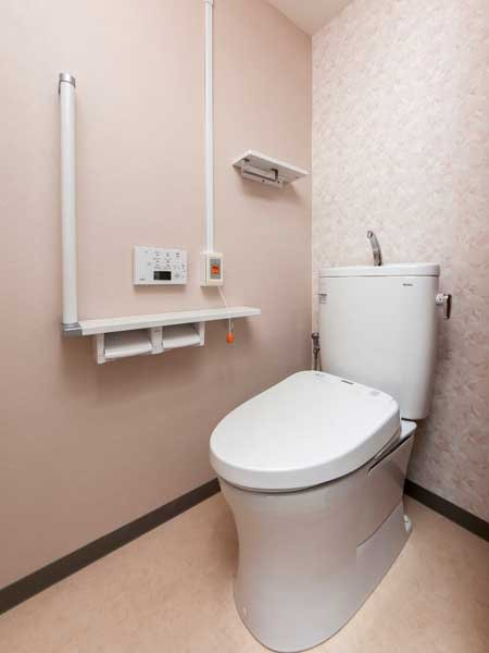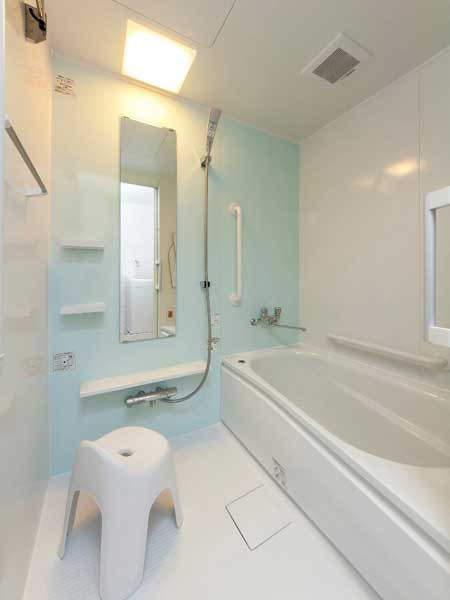 手すり付きで、またぎやすいユニットバス。いつでもお好きな時間に入浴ができます。