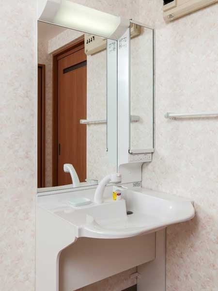 使い勝手の良い洗面台を設置し、 その隣には洗濯機を置く防水パンも設置しています。続きを読む -