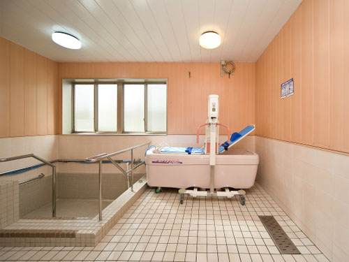寝たきりのご利用者様も安心して入浴が行える浴室が設置されております。