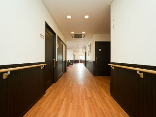 安心してご利用者様が行きかうことができる、清潔で明るく広々とした廊下。