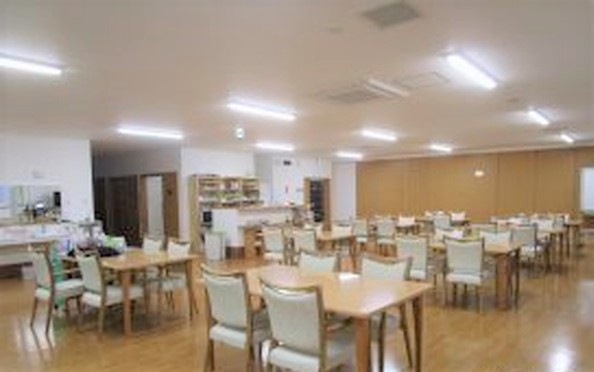 食堂兼デイホール、厨房、トイレ、脱衣室、浴室、洗濯室、リネン庫、汚物処理室、事務所、ロッカー室、健康管理室、相談室、消防用設備