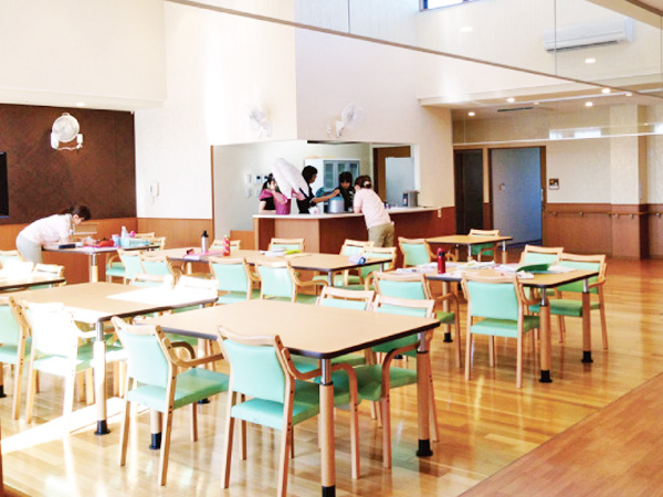 食堂、フロント、メールボックス、相談室、脱衣所、洗濯室、個浴室、機械浴室、リフト浴室、汚物処理室、駐車場、駐輪場、バイク置き場、エレベーター