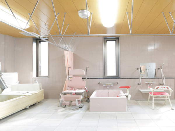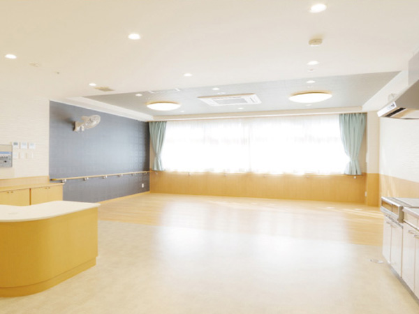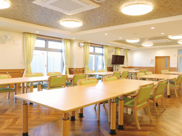食堂、フロント、メールボックス、多目的室、相談室、ヘルパーステーション、脱衣所、洗濯室、個浴室、機械浴室、リフト浴室、汚物処理室、駐車場、駐輪場、バイク置き場、エレベーター