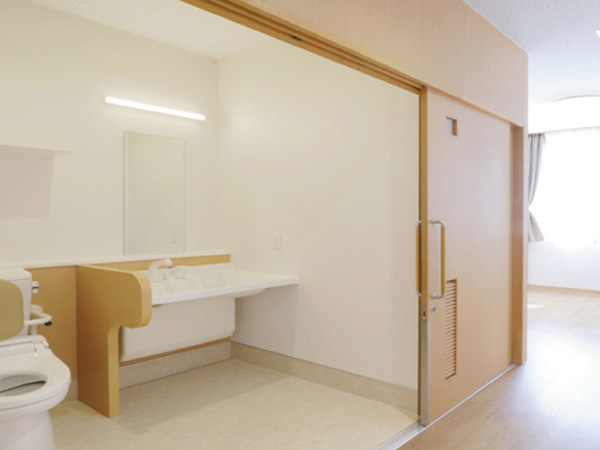 トイレ、エアコン、カーテン、クローゼット、ナースコール、洗面台、照明、玄関インターホン、介護ベッド