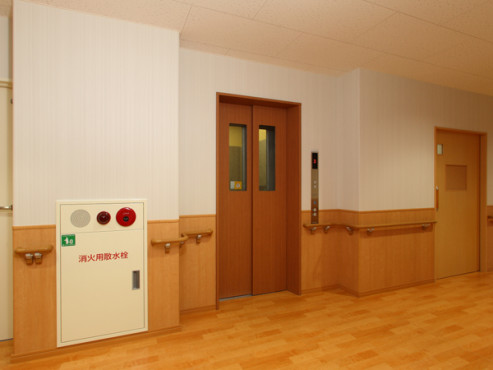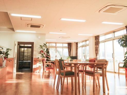 浴室、洗濯室、共用トイレ、エレベーター、食堂、キッチン、ホール、デイルーム、デイサービス浴室