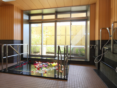 併設のデイサービスでは、入浴、排泄、食事などの介護や、油圧負荷マシンを使って機能訓練を行う日帰りの介護サービスを提供しています。