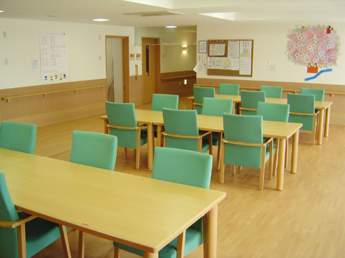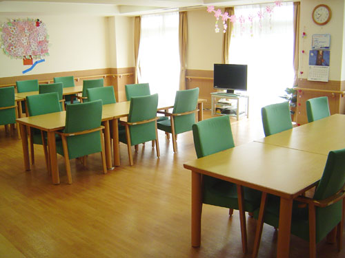 浴室(一般浴室・機械浴室)、食堂(機能訓練室兼用)、エレベーター、健康管理室、洗濯室、パントリー、駐車場