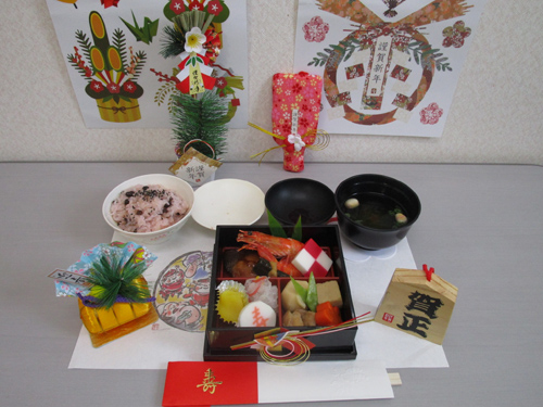 新年のお食事会を行いました。うま煮や海老、きんとんなど皆様に喜んで召し上がっていただきました。新年のご挨拶とともに皆様の健康を願ってのお祝い膳となりました。