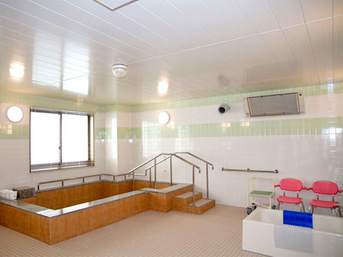 ラウンジ、食堂兼機能回復訓練室、リビング(各階)、健康管理室、相談室・応接室、機械浴室、一般浴室、洗濯室、トイレ、ケアコール、スプリンクラー、駐車場