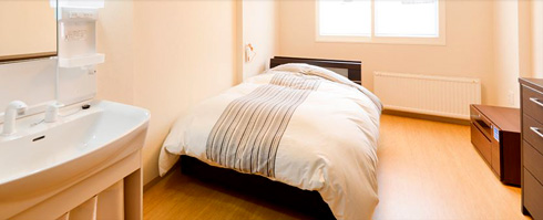 そのため、神経難病など医療依存度の高い方、寝たきりで医療処置が必要な方、排泄介助など随時対応が必要な方でも安心してご入居いただけます。