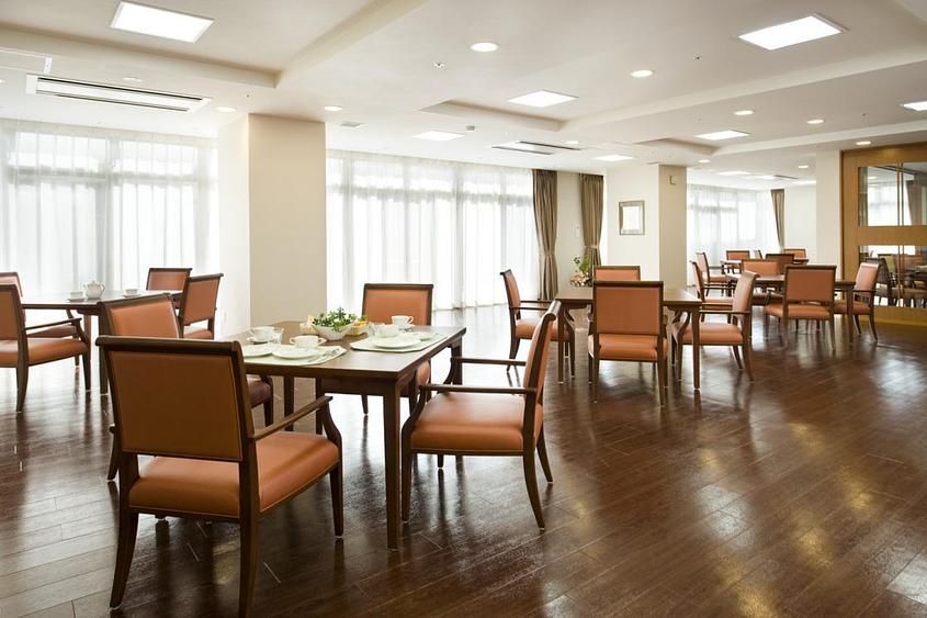 ダイニングルーム兼機能訓練室、ティールーム、ビューティサロン(各種の外部サービス〔利用者実費負担〕を受けるための部屋)、ファミリールーム、健康管理室兼事務室、浴室