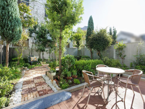 園芸活動を通して、ご入居者様と一緒に中庭(ウッドデッキ)を作っています。気候のいい日は外の風を感じながらお茶を楽しみます。