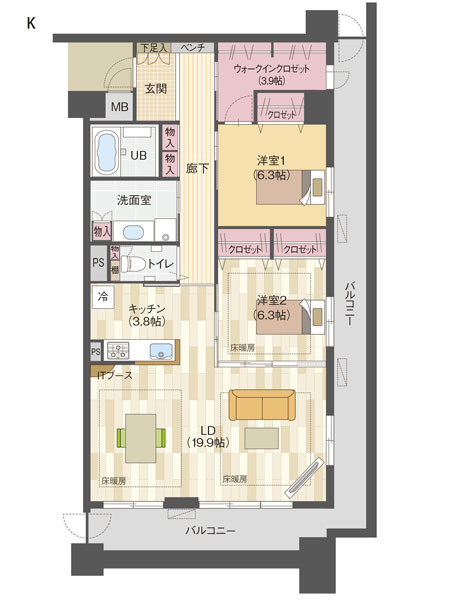 【一般居室 Kタイプ(95.86㎡)】お部屋の間取りの一例です。