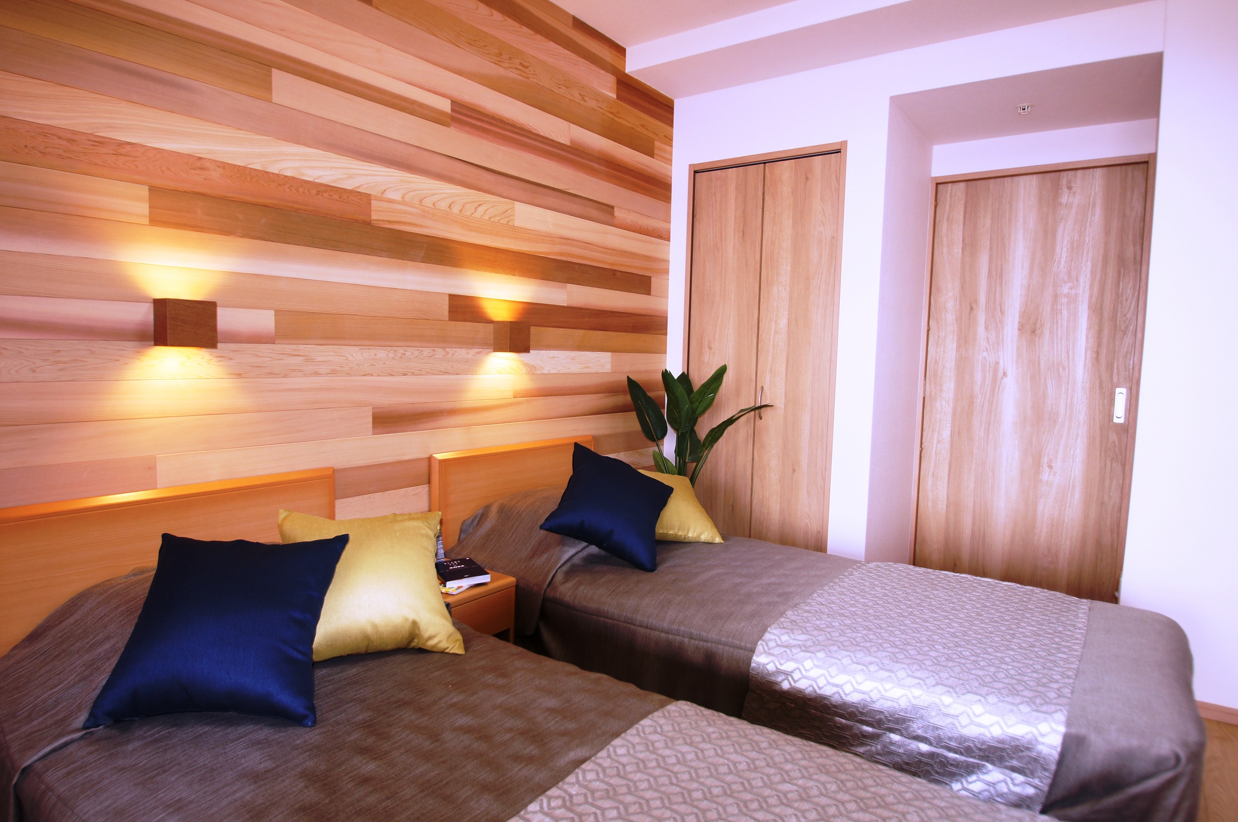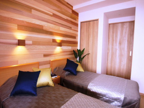 木のぬくもりを感じていただけるお部屋では、「安心(ナースコール、人感センサー)・安全(バリアフリー等)・快適(木質感ある内装)」な空間をご提供いたします。