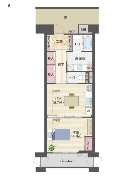 【一般居室 Aタイプ(51.13㎡)】お部屋の間取りの一例です。 (134戸あり、51.13㎡~124.30㎡まで様々な広さ、間取りのお部屋がございます) ※ご案内できるお部屋は、空室状況により変動いたします。続きを読む -