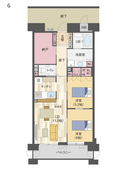 【一般居室 Gタイプ(67.80㎡)】お部屋の間取りの一例です。 (134戸あり、51.13㎡~124.30㎡まで様々な広さ、間取りのお部屋がございます) ※ご案内できるお部屋は、空室状況により変動いたします。
